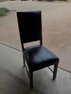 Melissa had two of these channel back chairs to refresh..and so she did! Her enthusiasm and hard work made her fall In love with the process so much that she purchased a staple gun and sewing machine to continue her fun creative endevours. She quickly mastered 8 way hand tied springs, working with leather and keeping stripes straight on a cuvy chair. Now she Is using her skills to update her Therapy Room with new chairs for her kids, hoping to give them fun light-up colors to match their moods.